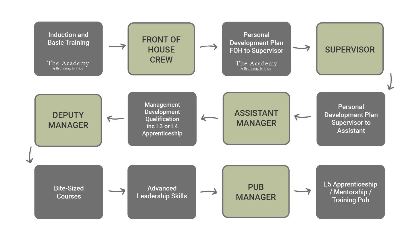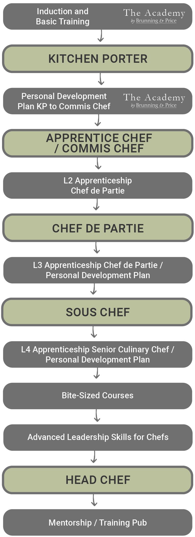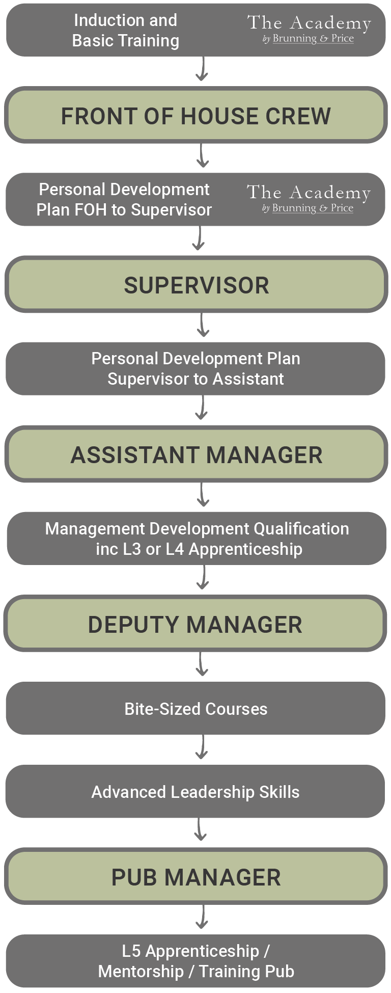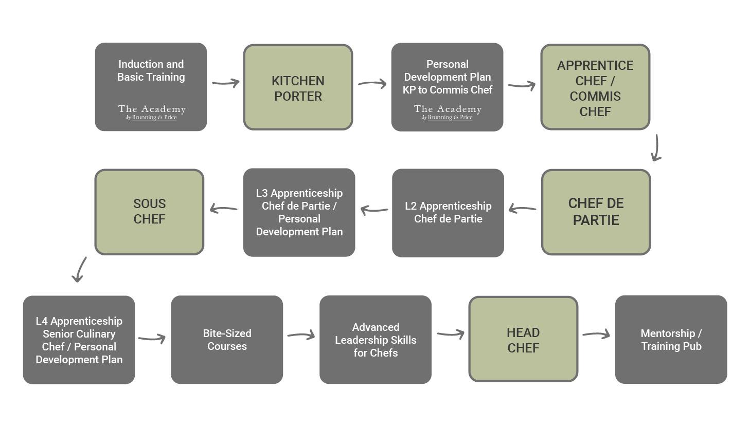 We are committed to learning and development for everyone, creating career paths for your development and to flourish your culinary journey with us. We’re here to support and empower you and pave the way for a successful career. We’re very proud of our track record of internal development and a huge number of people have been with us for for many years, having progressed within our pubs.
